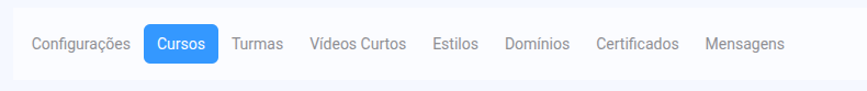 Você será direcionado para um painel dividido em abas de configuração. Nesse artigo vamos focar na aba Cursos.