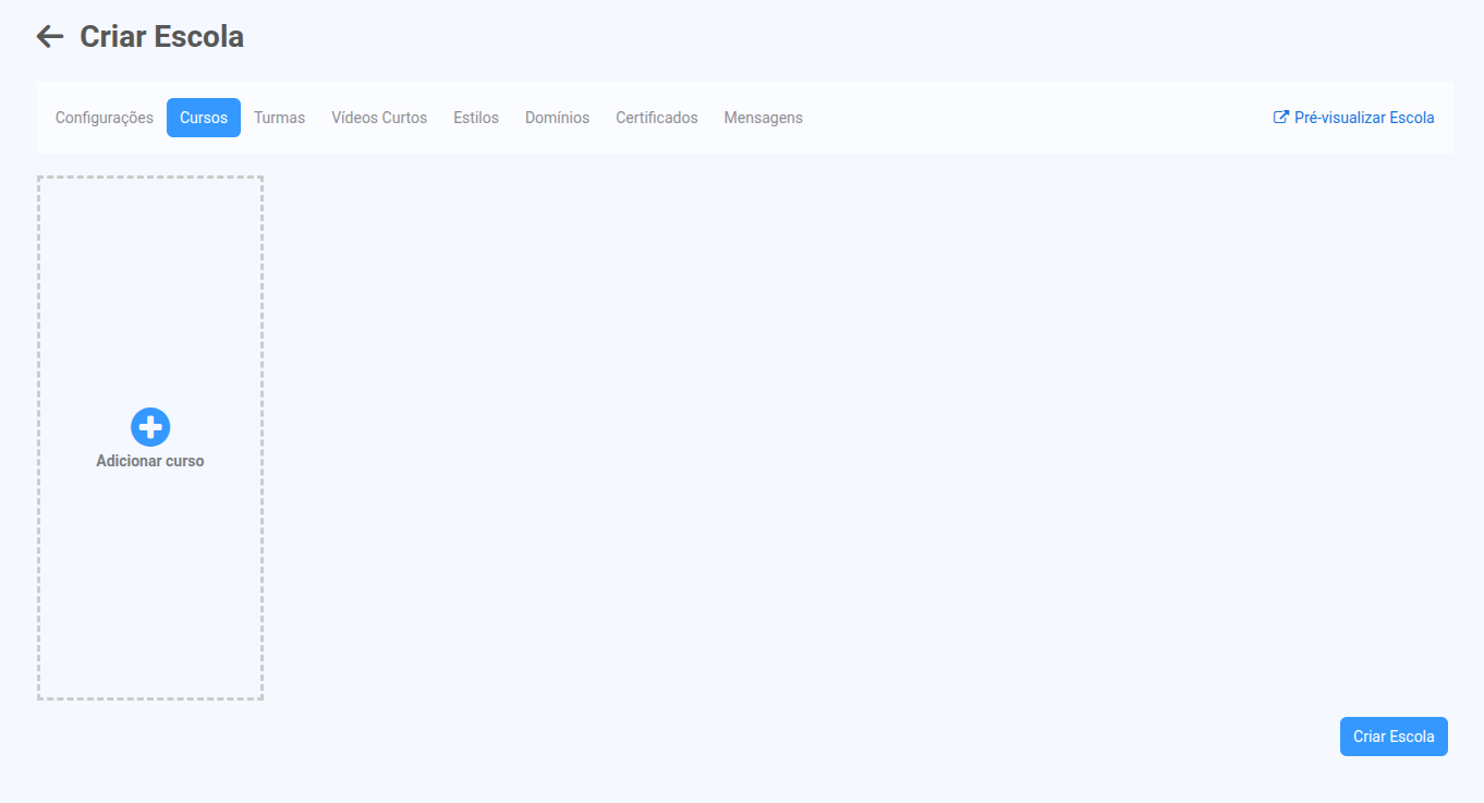 Depois de configurar a aba Configurações, o próximo passo é adicionar os cursos à sua escola.