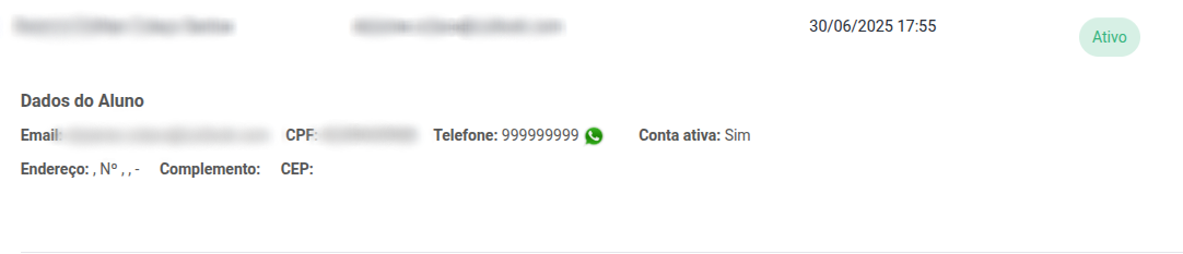 Se alguma dessas informações aparecer em branco, significa que ainda não foram adicionadas ou preenchidas no cadastro do aluno. Isso pode ser atualizado conforme necessário.