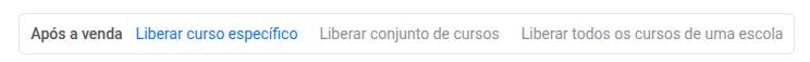 Ao ativar a área de membros, você verá a seção “Após a venda” com três opções de liberação de conteúdo: