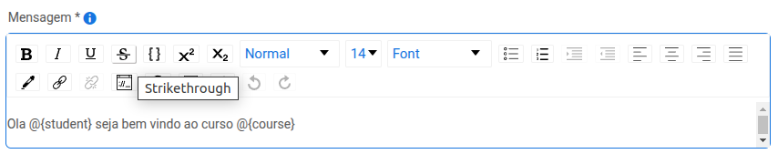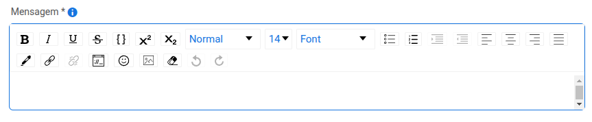 O campo da mensagem permite formatações como negrito, itálico, listas e muito mais.