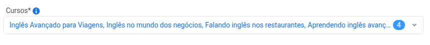 Selecione um ou mais cursos que receberão essa mensagem. A mensagem será enviada apenas para os alunos matriculados nos cursos selecionados.