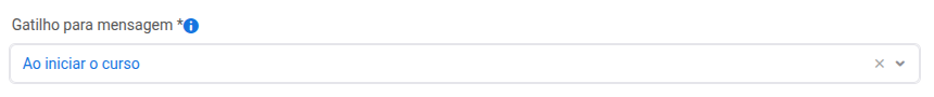 GATILHO – quando a mensagem será enviada (por exemplo, ao iniciar o curso, ao atingir certo progresso etc.)