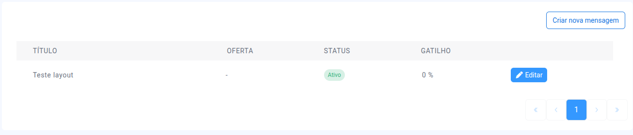 Aqui você verá uma lista com as mensagens já cadastradas. Cada mensagem mostra: