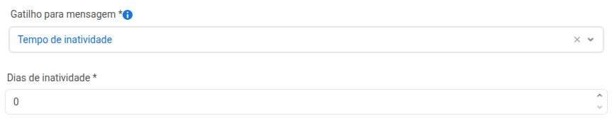 Se selecionar 'Tempo de inatividade', o campo 'Dias de inatividade *' aparecerá e deve ser preenchido.