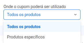 Um novo campo aparecerá para que você selecione manualmente os produtos em que o cupom poderá ser aplicado.