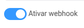 Se quiser aplicar o webhook para todos os produtos, basta ativar o toggle correspondente. Novos produtos serão incluídos automaticamente.