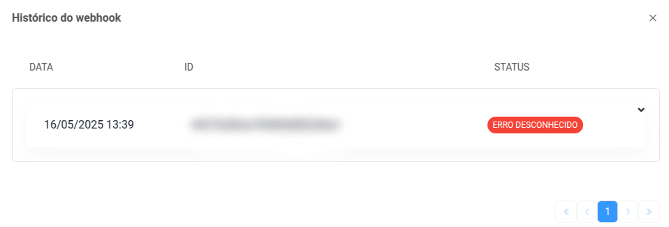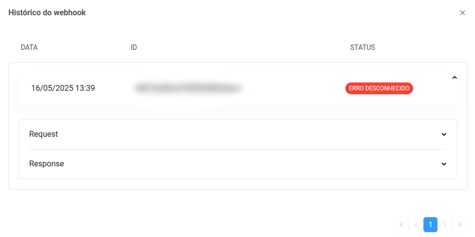 O histórico do webhook permite que você acompanhe as tentativas de envio feitas pela plataforma para a URL configurada.