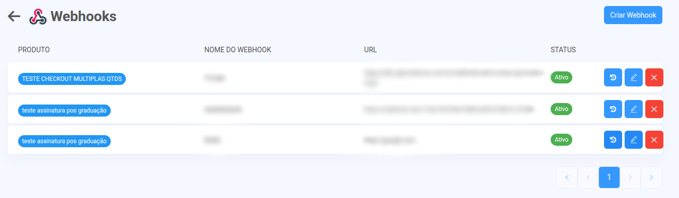(Caso não veja nenhum, é porque ainda não foram criados. Caso queira criar um webhook, acesse o artigo: Como criar um Webhook