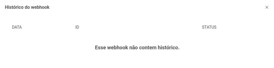 Será exibida uma mensagem informando que ainda não há histórico disponível para este webhook.