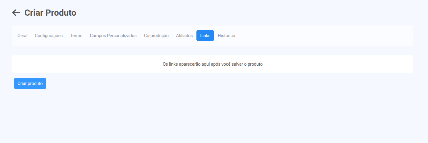 Importante: Os links só aparecem após o produto ser salvo.