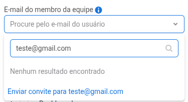 Se o e-mail já estiver cadastrado na plataforma, ele será listado automaticamente. Basta selecioná-lo.