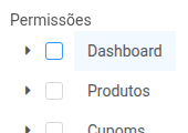 Se você marcar o item principal (ex: “Produtos”), todas essas opções serão ativadas automaticamente.
