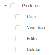 Por exemplo, em Produtos, você poderá permitir ações como: