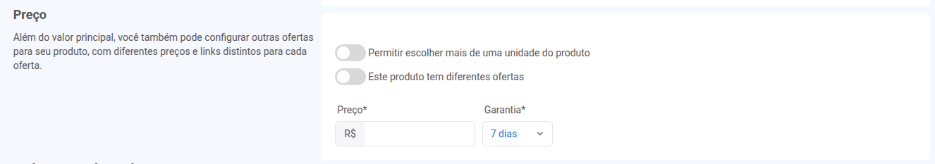 Além do preço principal, você pode configurar diferentes ofertas para o mesmo produto. Para isso, ative a opção: