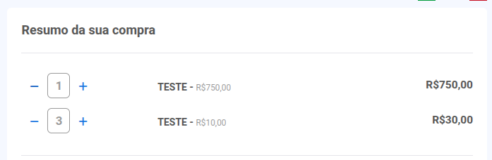 Se ativado: o cliente poderá selecionar quantas unidades deseja comprar do produto e da oferta.